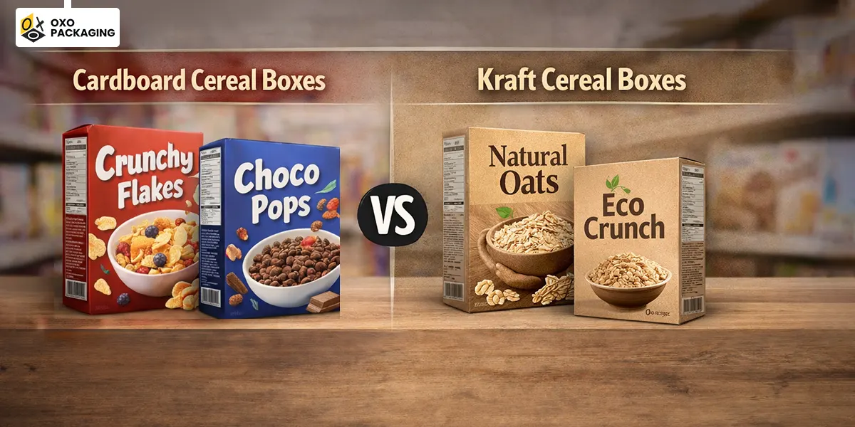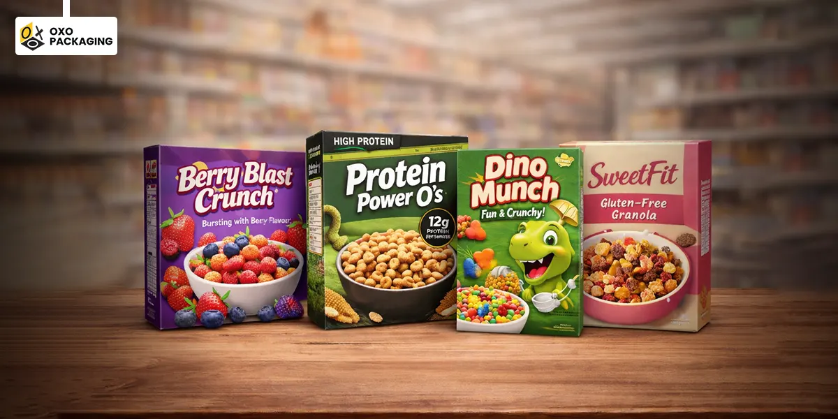 Whether you are hunting for mini cereal boxes or large ones, OXO Packaging offers custom cereal boxes at wholesale prices with unlimited customization, including perks like free shipping, free design consultation, and sustainable materials. You can make cereal boxes according to your preferences and turn cereal boxes into a high-end branding tool that increases brand value and sales.
