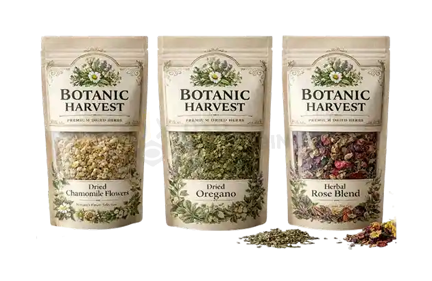 For dried herb packaging, airtight, multi-layered pouches protect against light and air, extending the usable life of the product. Some of these pouches are recyclable and biodegradable herb packaging, promoting a sustainable image of your brand.